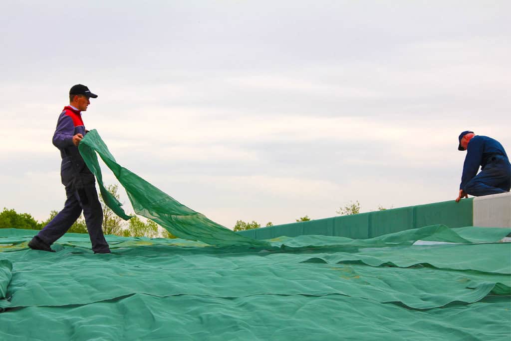 Tirer le plastique et les toiles sur la fosse